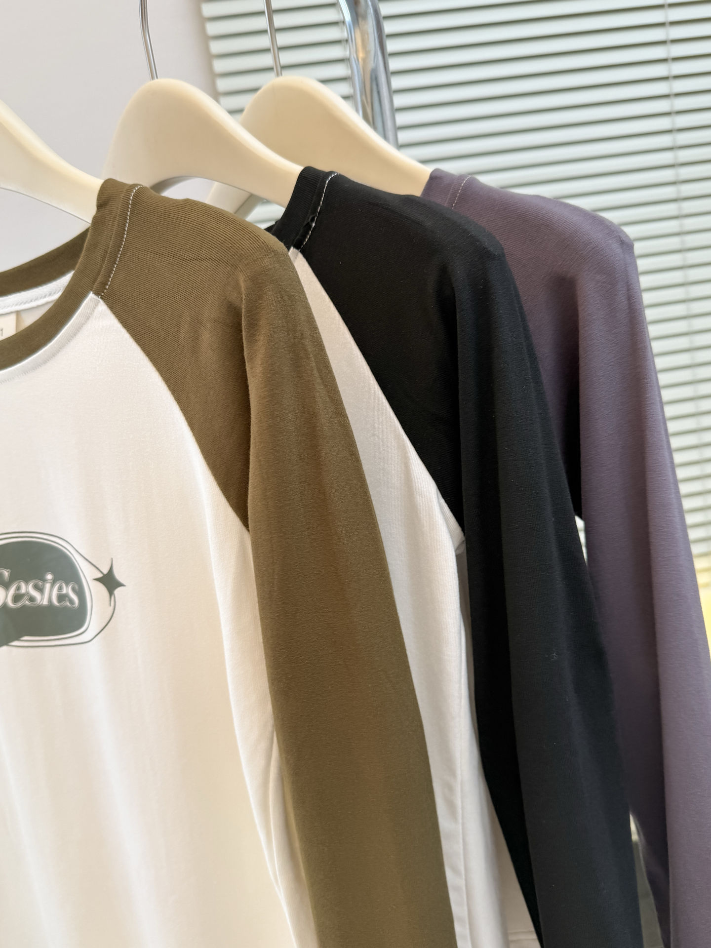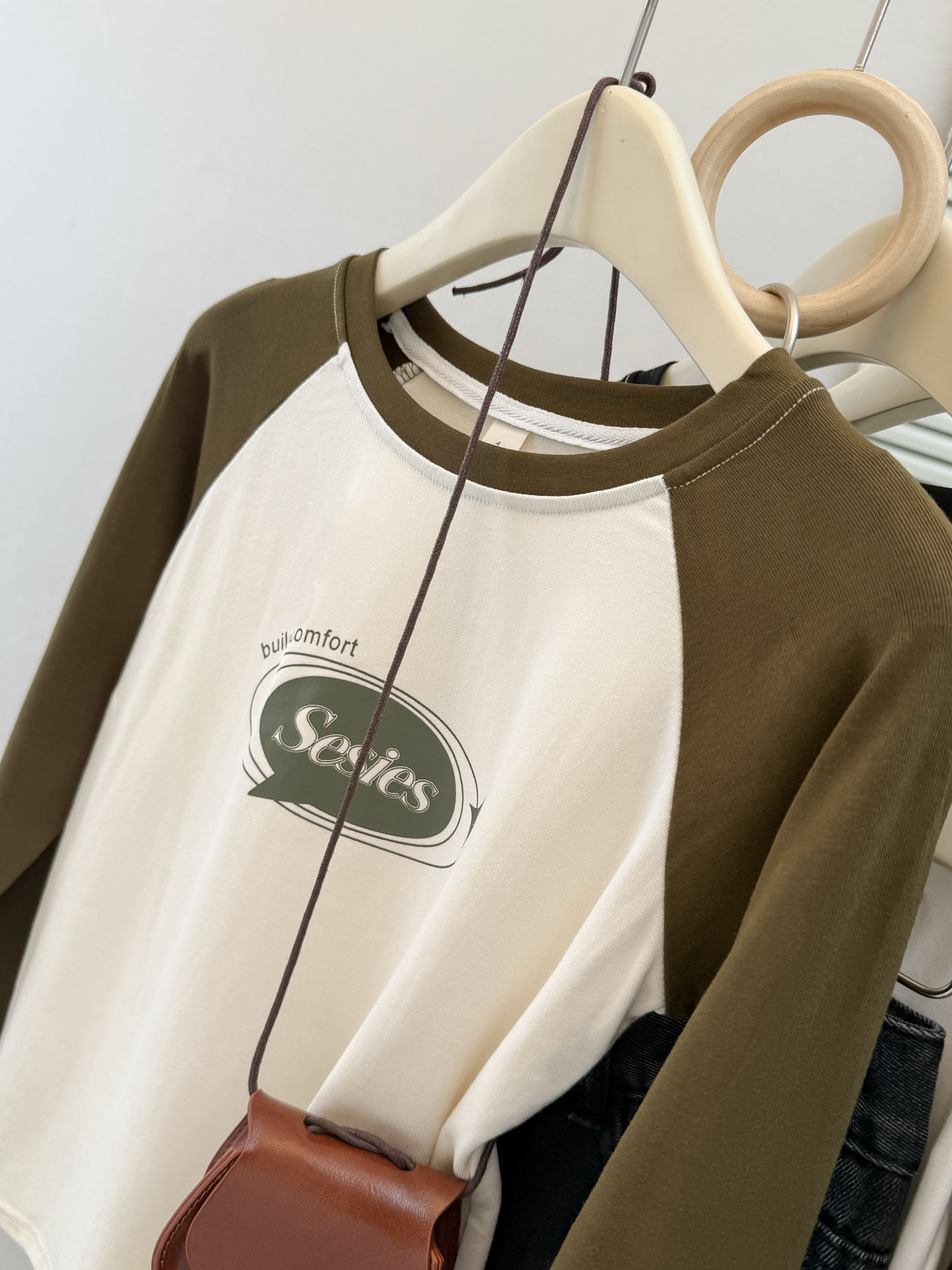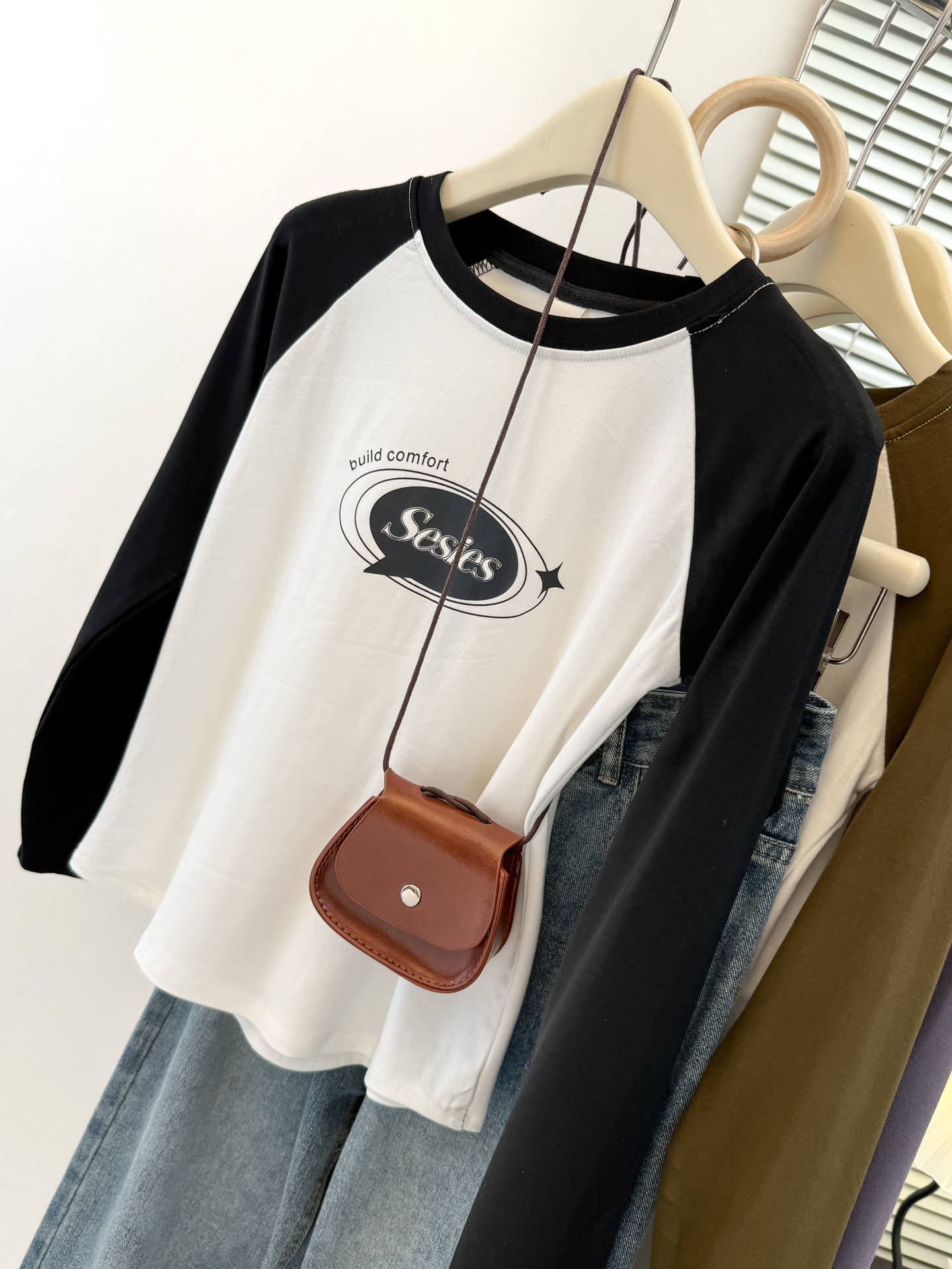 style new color-blocked long sleeve T-shirt for womenearly autumn and spring slim fit short top raglan sleeve