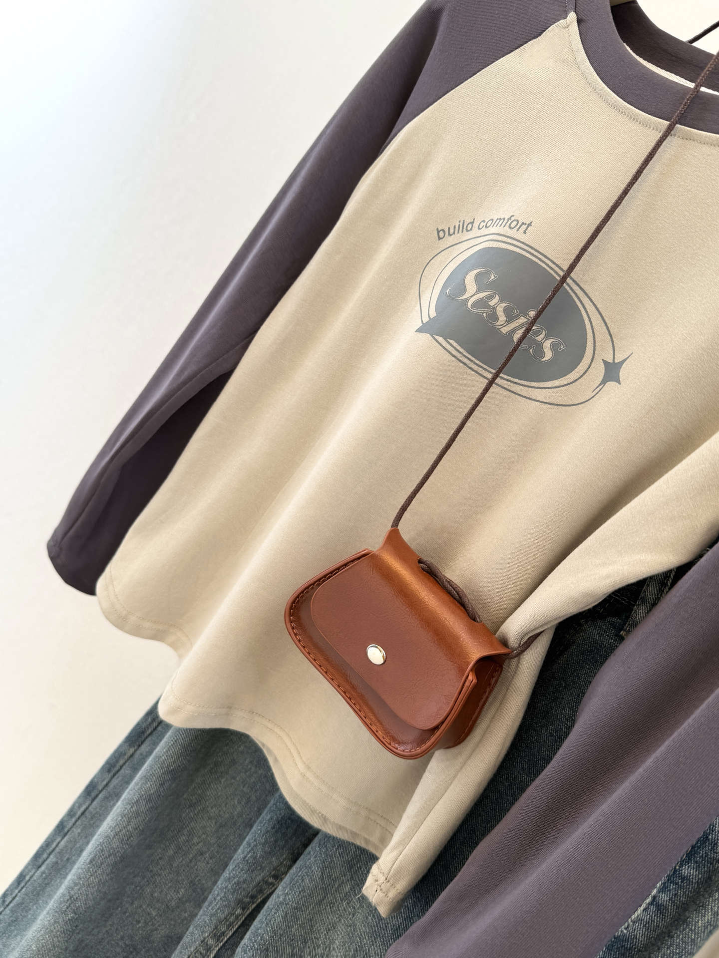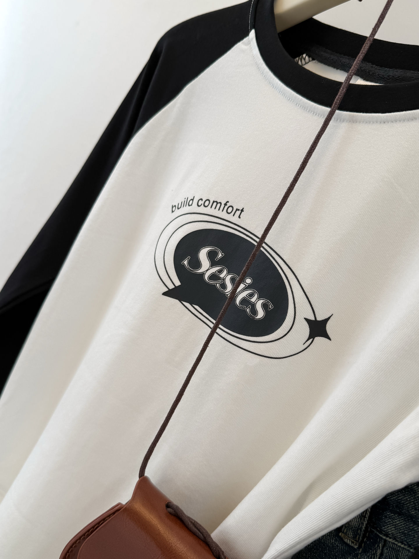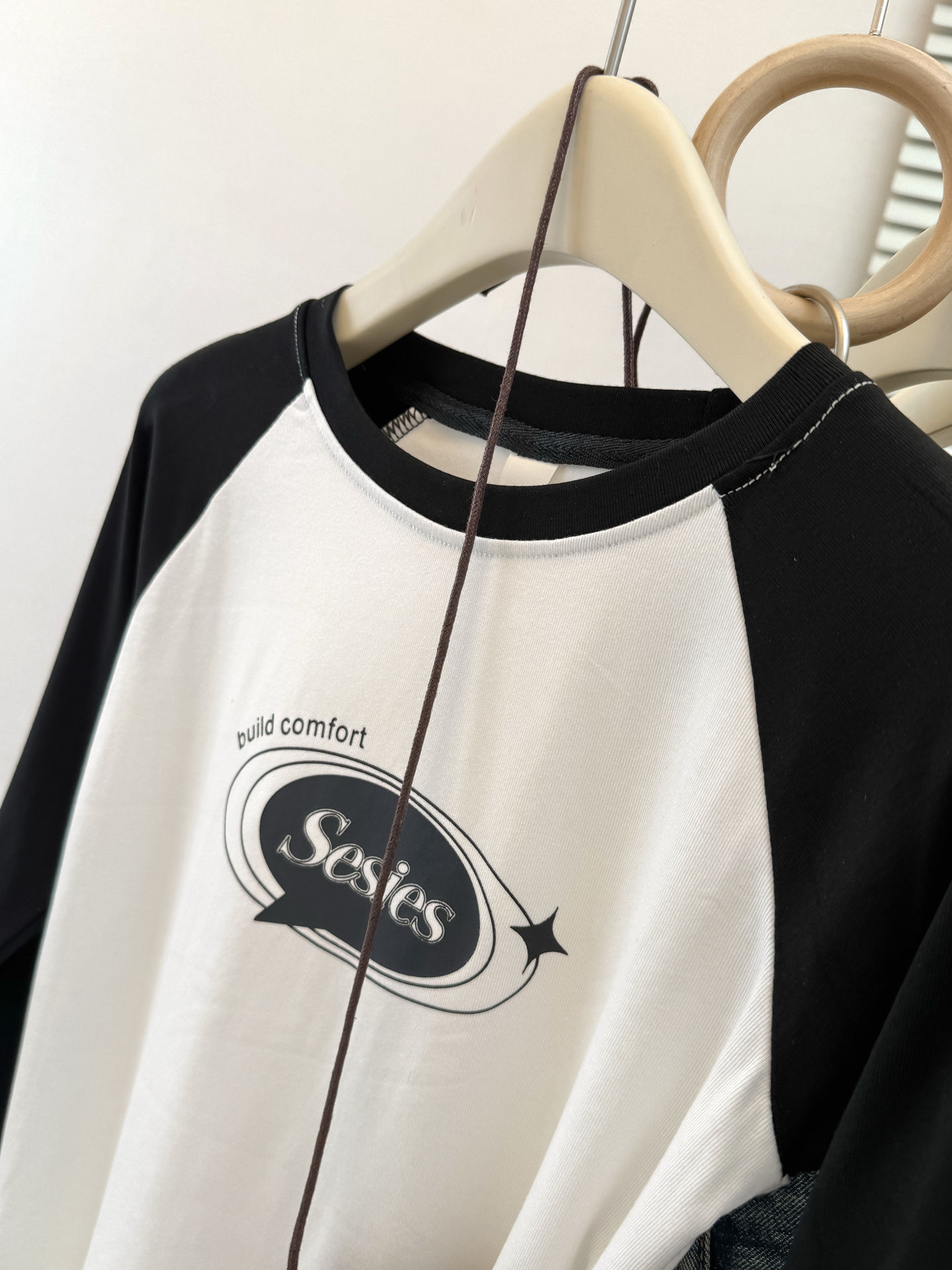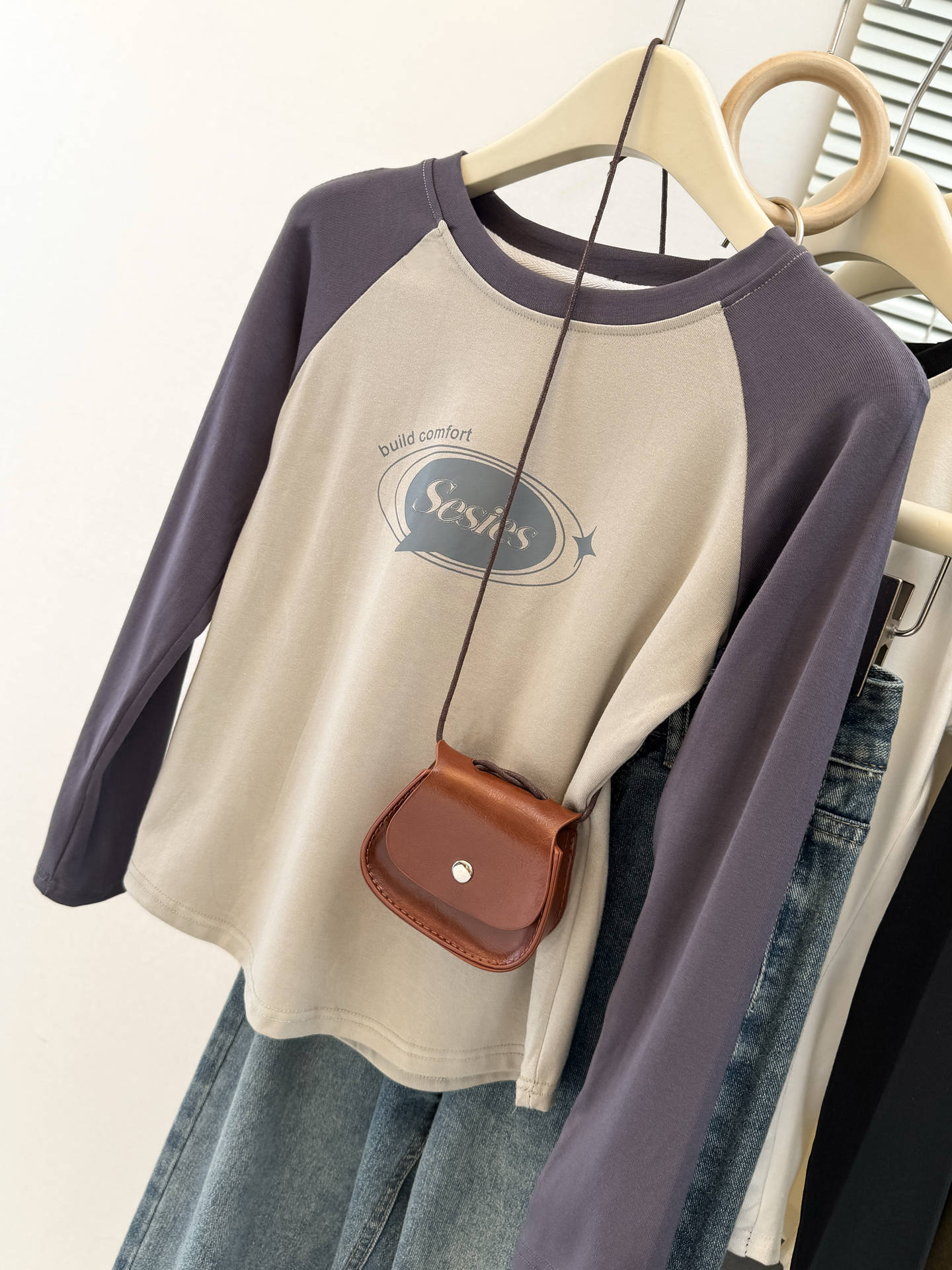 style new color-blocked long sleeve T-shirt for womenearly autumn and spring slim fit short top raglan sleeve